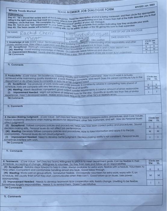 Solved Whole Foods Market Instructions Team Member Job Chegg Com
